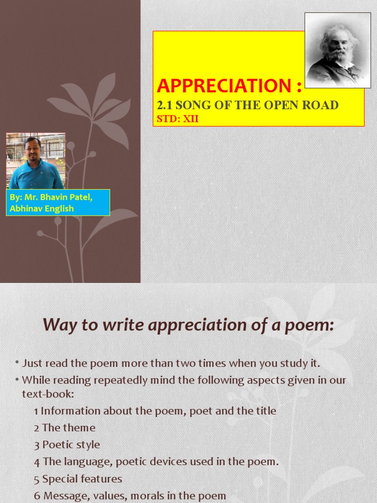 Appreciation Song Of The Open Road Pdf Poetry